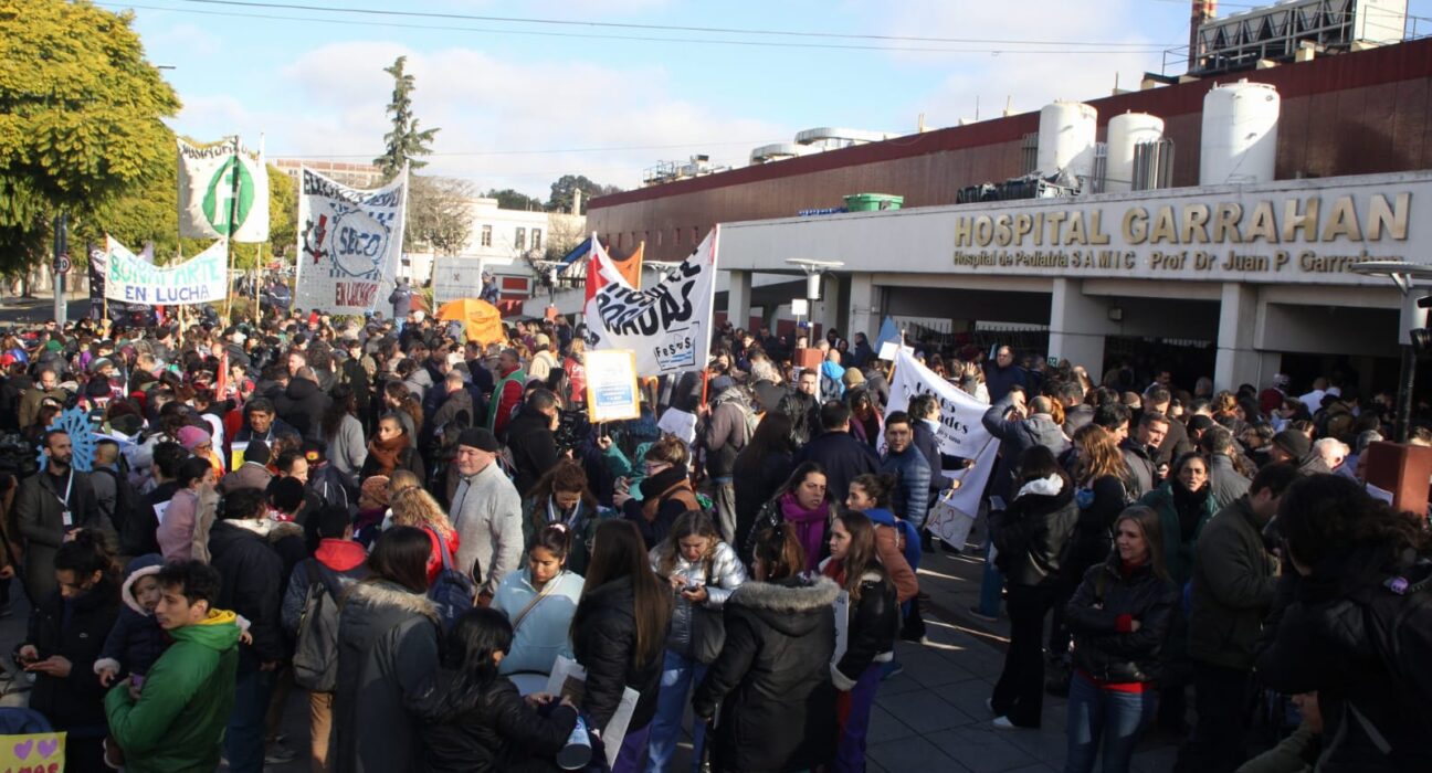 La semana pasada trabajadorxs del Garrahan realizaron una contundente movilización en Plaza de Mayo para denunciar la situación del hospital, del sistema de salud y de educación pública que allí se combinan.