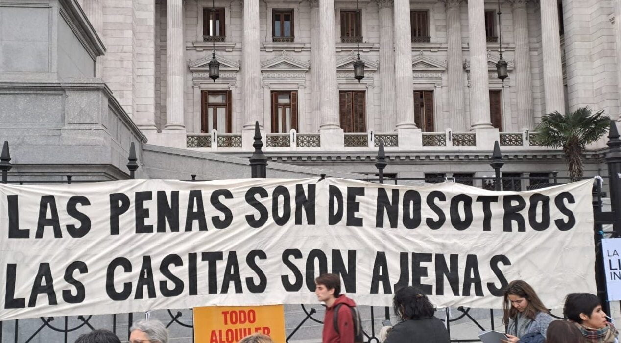 Gervasio Muñoz, referente de Inquilinxs Agrupadxs, reflexionó acerca de esta situación y afirmó que «lo que está sucediendo es bastante complejo. Empezó a discutirse en Diputados hace mucho tiempo la modificación a la Ley de alquileres, tuvo media sanción el mes pasado en la Cámara de Diputados. Una media sanción del proyecto del mercado inmobiliario y de Juntos por el Cambio, esa media sanción que pasó al Senado donde tuvimos debate en las comisiones de Legislación General y Presupuesto. Ahí fueron todos los representantes del mercado, fuimos las organizaciones inquilinas y logramos que haya un dictamen de mayoría que es el dictamen del Frente de Todos y del Bloque Federal, que tendrían los votos en la cámara para votarlo en donde se plantea sostener los puntos más importantes de la Ley e inclusive incorporar algunas cosas como la prohibición de publicar avisos de alquileres en dólares, el plazo de tres años se sostienen y además modifican la actualización del precio, la pasan a semestral pero por actualización por salario, eso fue el dictamen de mayoría».