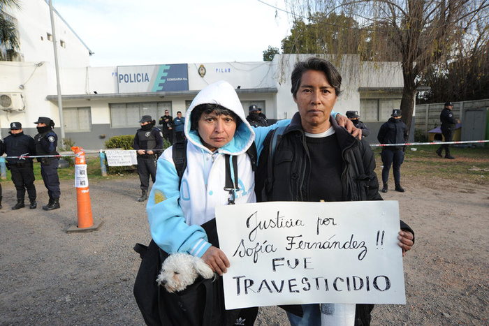 Sofia Fernández era una chica trans que fue detenida de manera arbitraria el 8 de abril de 2023 en el distrito de Pilar. El 10 de abril fue hallada sin vida en la comisaría 5ta de Derqui. Ante la decisión del juez Walter Saettone de sobreseer a 9 de los 10 policías imputados por su transfemicidio, la familia de Sofia, junto a la Comisión de Justicia y autoconvocades, concentraron en los Tribunales de San Isidro, ubicados en Ituzaingó 340, para exigir la elevación a juicio de todos los implicados.