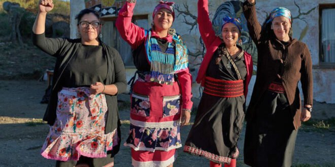 *Foto: En la imagen de izquierda a derecha, Luciana Jaramillo, Betiana Colhuan Nahuel, Celeste Ardaiz Huenumil y Romina Rosas detenidas en Bariloche. (Imagen de LUAN Colectiva Fotográfica en Resumen latinoamericano)
