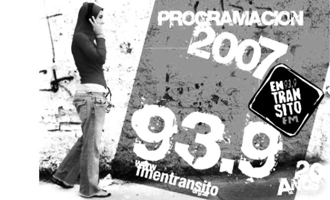 «En los ochenta queríamos que la radio nos liberara de los palos, la pobreza, la ignorancia, la muerte, el miedo, la tristeza, el olvido. Arreglamos el estudio, colgamos los micrófonos y abrimos las puertas. Todos comenzaron a venir: vecinos, políticos, poetas y músicos. Usamos horas infinitas de la mañana y la noche hablando sobre lo que pasaba en el Oeste. Hubo debates, discusiones y algunas respuestas sobre cloacas, colectivos y colegios. Pero también usamos toda la curiosidad de la banda en una búsqueda estética: mezclamos a los Clash con Silvio y a Metálica con Gismonti y pasó lo que tenía que pasar: en esa explosión, cada uno encontró su voz.» Así empieza la gacetilla/ invitación a las actividades para festejar los veinte años de En Tránsito que se cumplieron el 9 de julio de 2007.